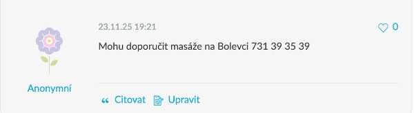 "Mohu doporučit masáže na Bolevci 731 39 35 39."